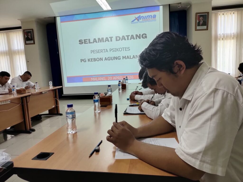 MALANG – Dalam upaya memperkuat lini sumber daya manusia dan memastikan efektivitas kerja di sektor industri gula, Anima Consulting sukses menyelenggarakan rangkaian psikotes bagi karyawan di Pabrik Gula (PG) Kebun Agung, Malang. Kegiatan yang berlangsung pada Senin, 20 April 2026 ini menyasar para karyawan dengan status Perjanjian Kerja Waktu Tertentu (PKWT) sebagai bagian dari program evaluasi dan pengembangan kompetensi internal perusahaan. Psikotes ini dirancang untuk mengukur berbagai kemampuan, termasuk aspek kognitif, kepribadian, dan sikap kerja, yang diharapkan dapat memberikan wawasan mendalam tentang kekuatan dan area pengembangan masing-masing karyawan. Dengan melibatkan profesional berpengalaman, program ini bertujuan tidak hanya untuk meningkatkan kinerja individu, tetapi juga untuk meningkatkan sinergi tim dan produktivitas keseluruhan di lingkungan kerja. Hasil dari psikotes ini akan digunakan untuk merumuskan strategi pengembangan karyawan yang lebih baik, serta mendukung perusahaan dalam mencapai tujuan jangka panjang dan meningkatkan daya saing di industri yang semakin ketat.
